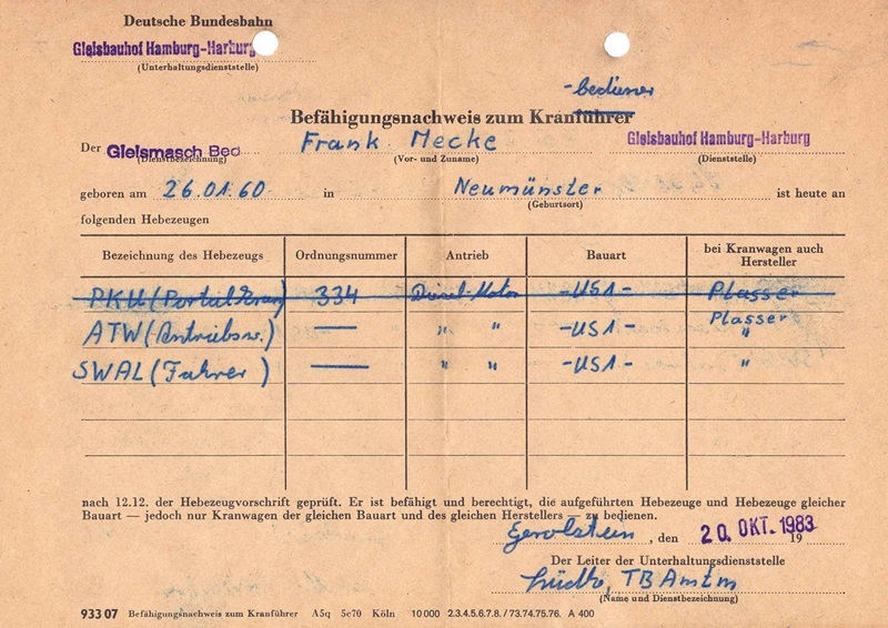 Eins von einigen Befähigungsnachweisen .