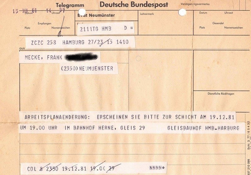 Bei Arbeitsplan Änderungen kam zu Hause ein Auto der Bundespost und brachte ein Telegramm.
